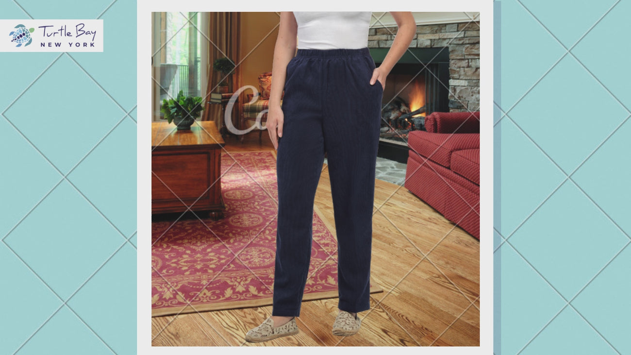Womens Pull On Fine Wale Corduroy Pants with soft-covered elastic waist