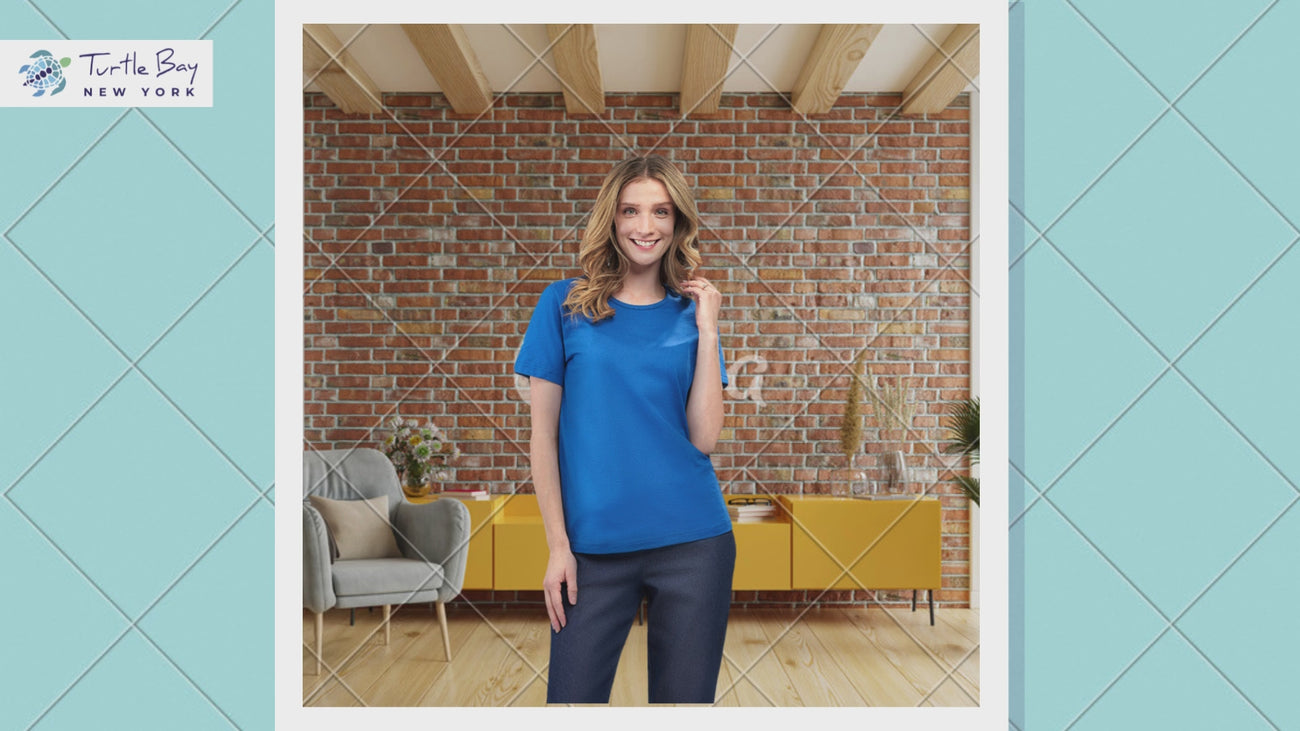 The ultimate wardrobe essential, our Women’s Short Sleeve Crew Neck Knit Tee combines comfort and style in one perfect piece. Crafted from a soft cotton-polyester blend, this classic tee offers a breathable and relaxed fit perfect for everyday wear. The timeless crew neck and short sleeves provide a flattering silhouette, while the 26" length hits at the hip for a casual yet polished look. Ideal for layering or wearing solo, this versatile tee pairs effortlessly with jeans, skirts or leggings. Available in a range of colors, it is a must-have addition to any woman’s closet.